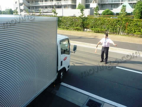 引越し現場へ出発する前に、近隣の掃除をみんなで行います。