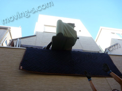 家具を交換するのですが、玄関からではなく吊り下げての搬出、搬入が必要です。